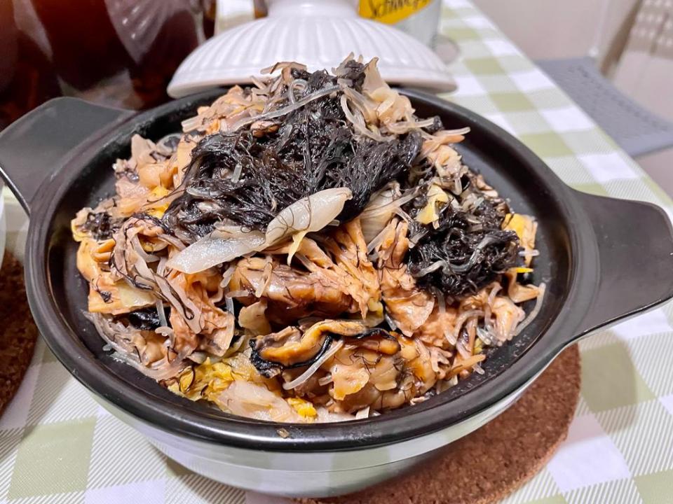 3. 加入浸泡好的江珧柱,1公升清水先用大火煮沸,再轉小火慢煨2小時,煨出湯頭